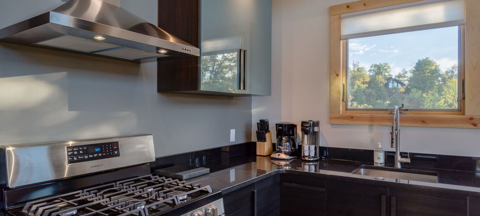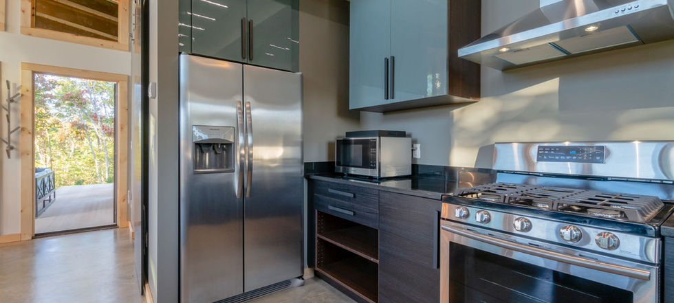 Mountain-modern style hosted by the Watershed Resort, this is the first of what will be 4 one-bedroom units featuring a loft-industrial flavor. Perched on a ridge overlooking Clingman’s Dome to the north and the Nantahala Gorge to the west, this unit has a gorgeous sunset view. Enormous glass walls and huge doors accentuate the great outdoors from a luxurious, modern indoors.